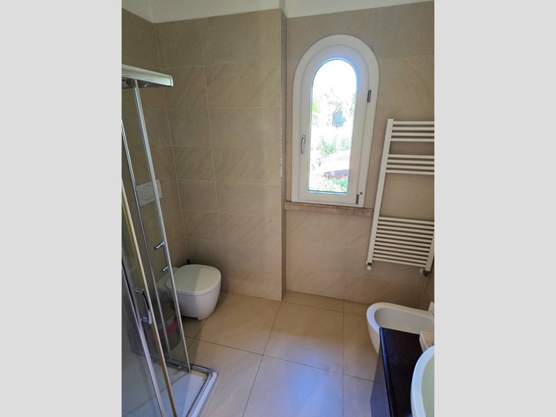 La villa è rifinita con materiali di pregio: pavimentazione in parquet, bagni in gres porcellanato, infissi in legno e alluminio di ultima generazione realizzati su misura, persiane blindate con zanzariere, porte interne in legno laccato, parati, controsoffitti con faretti, termoarredi in alluminio, impianto dallarme volumetrico e perimetrale, sistema di domotica e impianto di aria condizionata inverter in tutti gli ambienti. L'impianto di riscaldamento è autonomo con caldaia a gas.