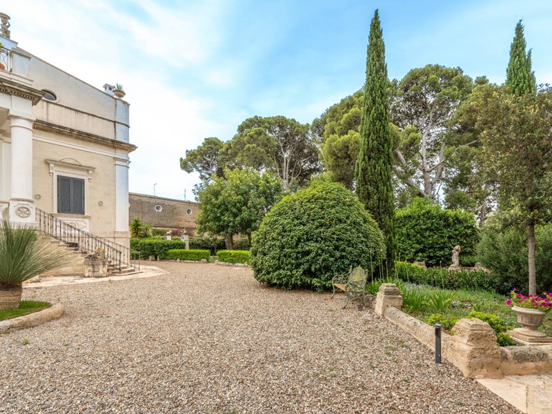 Il giardino è un'oasi di pace con prato verde, palme, edera, piante fiorite, statue, decori e nicchie, oltre a un romantico pergolato coperto. La proprietà include un ampio parcheggio, locali tecnici, una piccola dependance e un impianto fotovoltaico rinnovato. Questa villa di lusso è un vero gioiello, perfetto per vivere momenti indimenticabili immersi in un'atmosfera di eleganza senza tempo.
