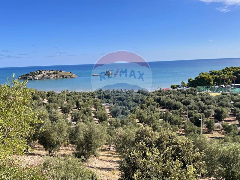 La proprieta' e circondata da un terreno panoramico di mq 9000, con ingresso direttamente dalla strada provinciale Vieste-Mattinata.