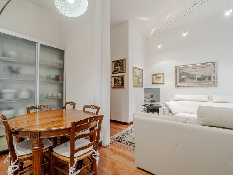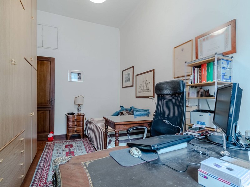 L'appartamento. che ha 2 affacci, e soffitti alti mt. 3,55, è composto da un ampio ingresso, soggiorno living con zona cucina, 2 camere da letto, uno studio, 2 bagni.