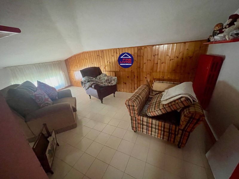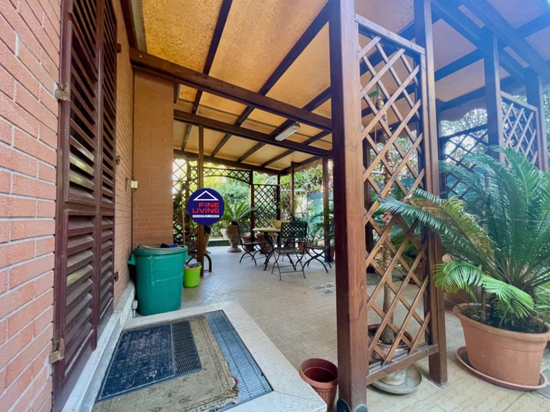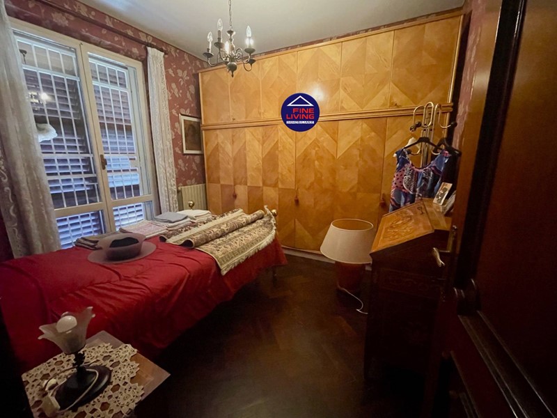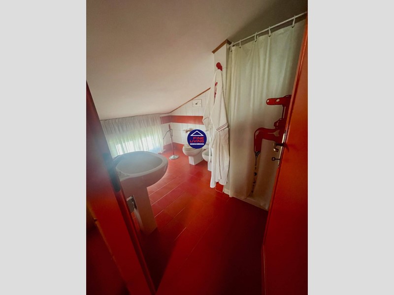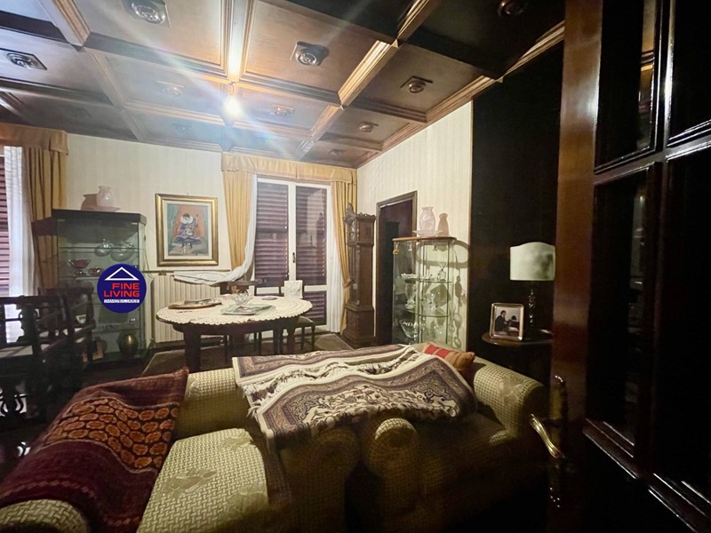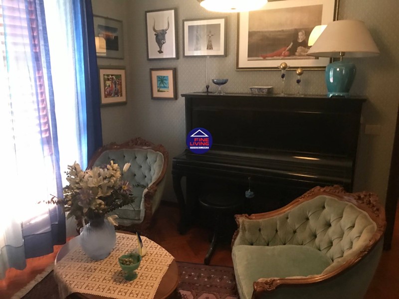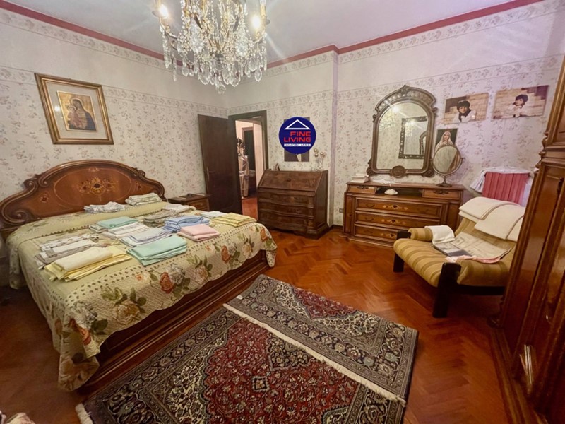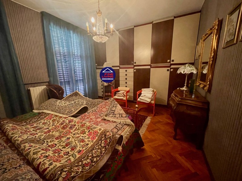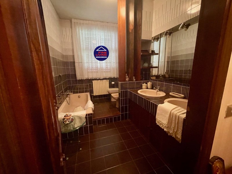 Primo Piano: grande salone con soffitto a cassettoni in legno di noce, studio e grande terrazzo perimetrale, biblioteca con serra chiusa con vetrata, disimpegno, camera da letto con balcone, bagno con vasca.