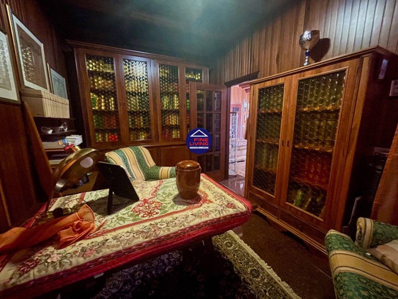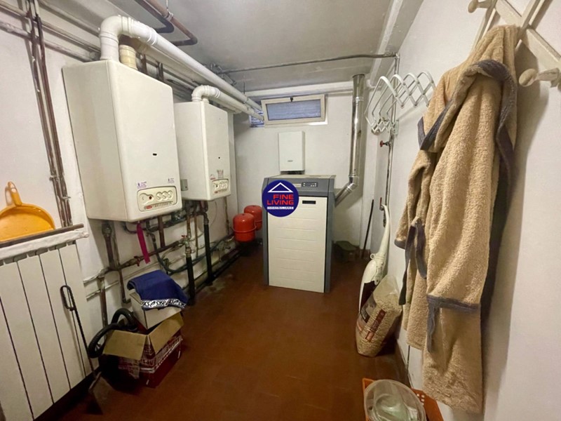 Piano Interrato: garage (anche con cucina di servizio e ripostiglio); capanno con camino funzionante e spazio per attrezzi, bagno con vasca e doccia, vano caldaie (gas e pellet), lavanderia/stireria, dispensa e cantina.