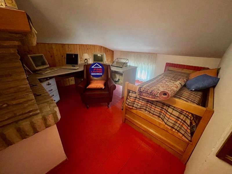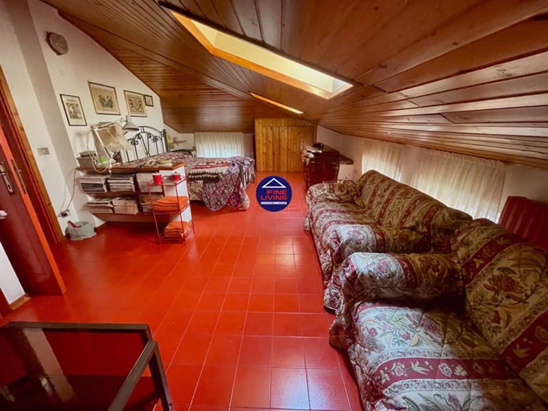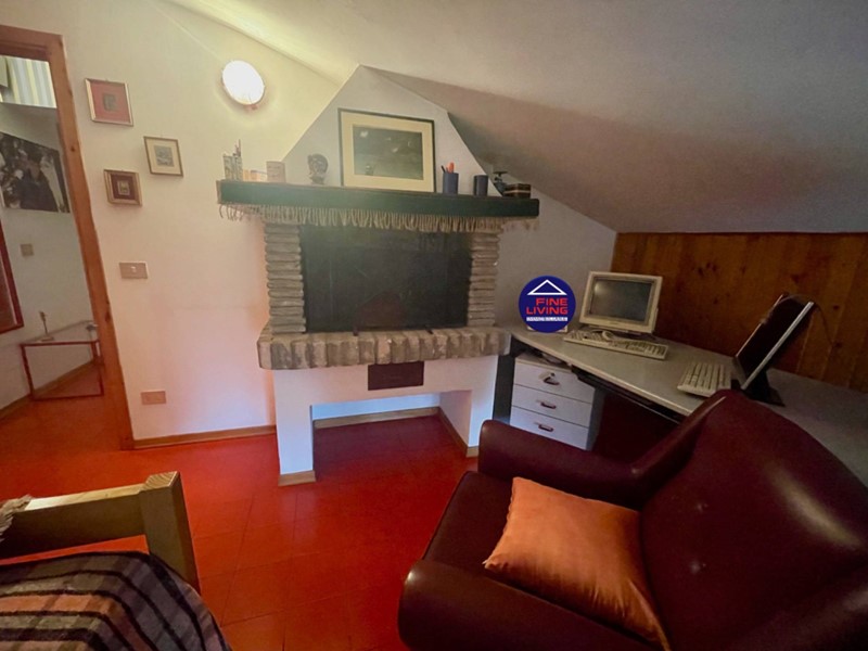 Mansarda: stanza abitabile con camino ; grande ambiente mansardato con abbaini tipo Velux nuovi (marca tedesca Roto, 2021), bagno con doccia, altro studiolo.