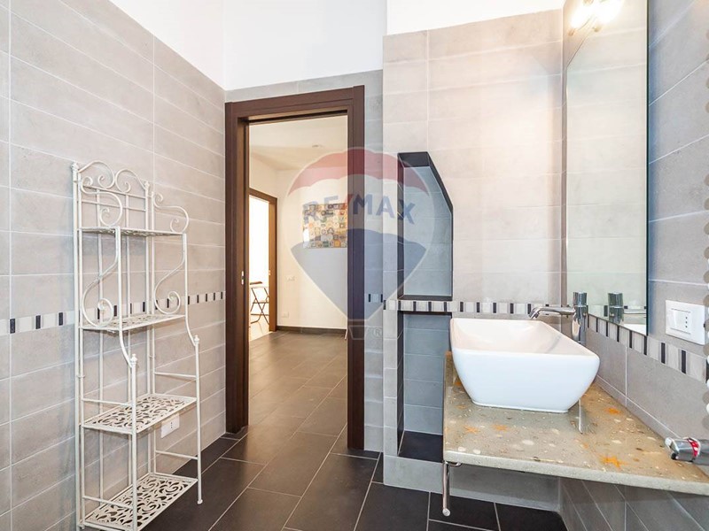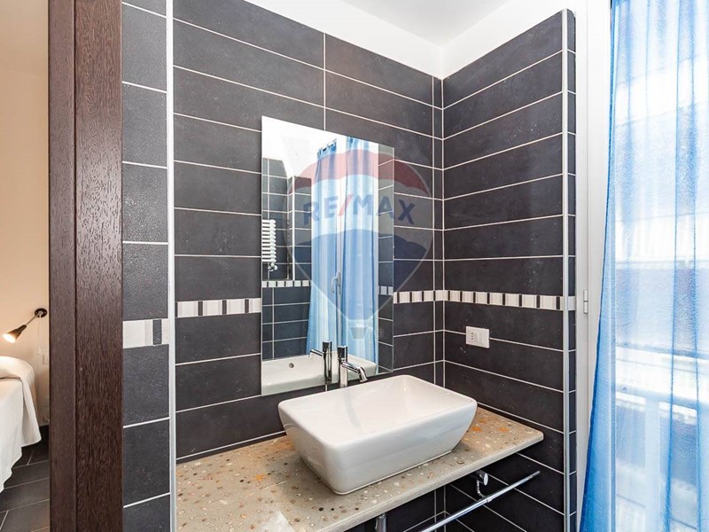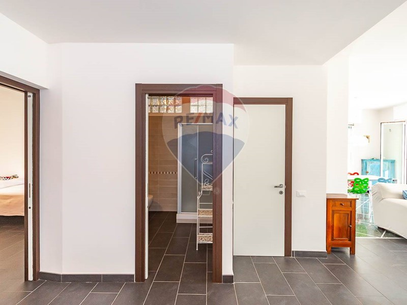 Dal soggiorno si accede direttamente ad un terrazzo molto ampio e vivibile di ca. 25 mq. con vista mare, ideale per cene conviviali e per godere della brezza marina.