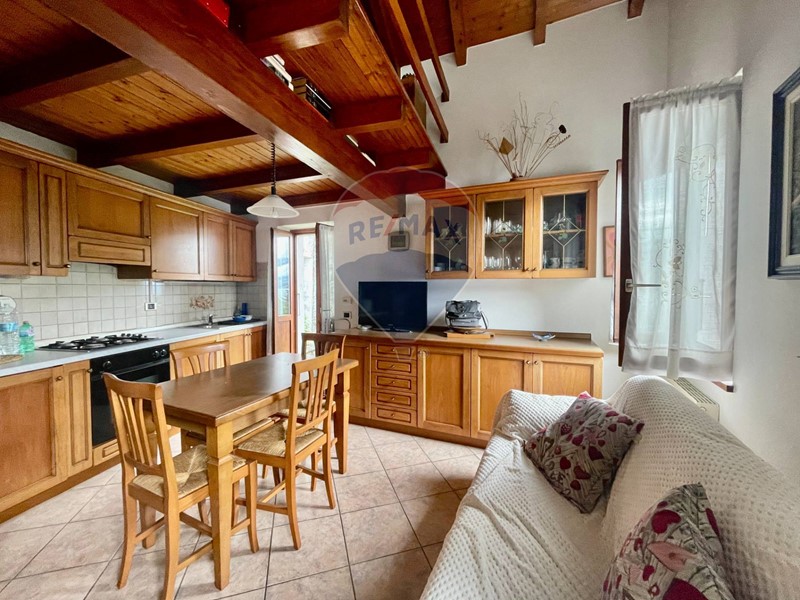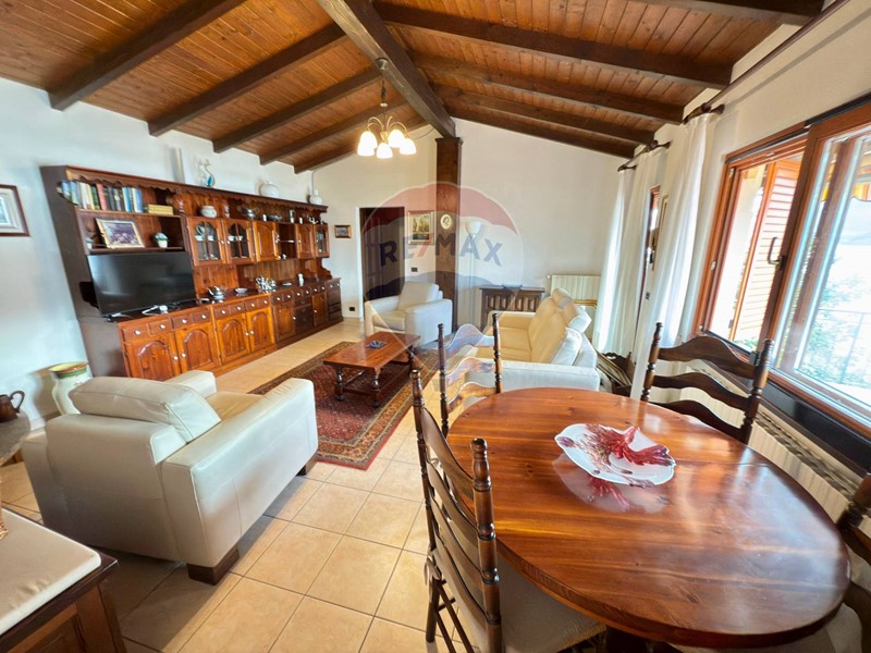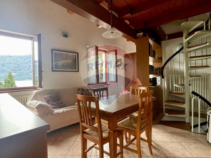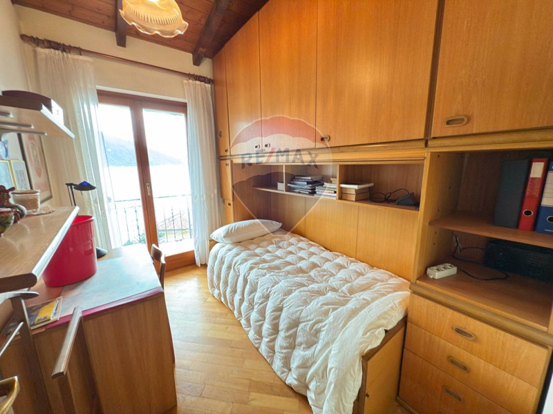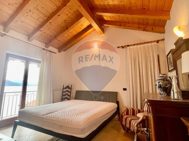 Dalla spaziosa e panoramica terrazza si accede allampio ingresso e da qui alla luminosa cucina abitabile che si affaccia sul portico coperto, ideale per mangiare allesterno, e al soggiorno, dotato di termo camino. Un disimpegno ci porta alla zona notte composta da una camera matrimoniale, una camera da letto singola e il bagno. Tutti i locali godono di una fantastica vista lago. Il soggiorno e la zona notte hanno un bel tetto a vista.