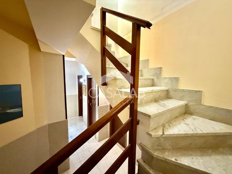 Il piano superiore ospita altre tre camere da letto e un terzo bagno, oltre a due comodi terrazzini che collegano esternamente le stanze.