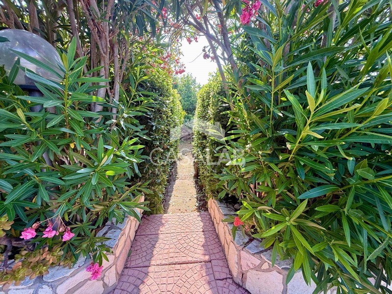 La villa è circondata da un lotto di circa 1000 mq, parte in terreno e in parte pavimentato, che consente lingresso e il parcheggio interno di auto, moto e bici.