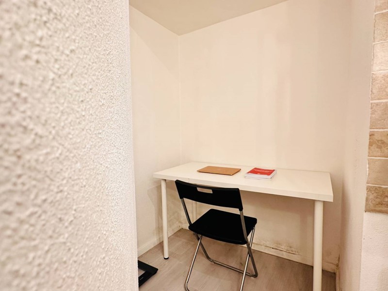 Lingresso si apre su un luminoso soggiorno, con spazi ben distribuiti che comprendono una cucina semi-abitabile e una comoda zona studio, perfetta per chi lavora da casa o desidera un angolo dedicato alle proprie passioni.