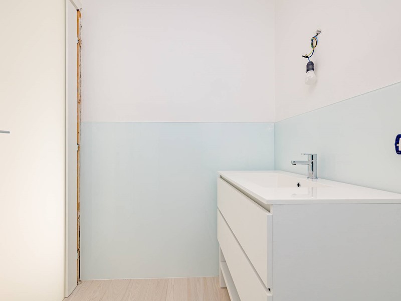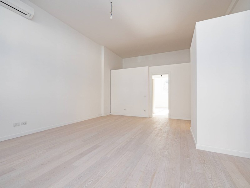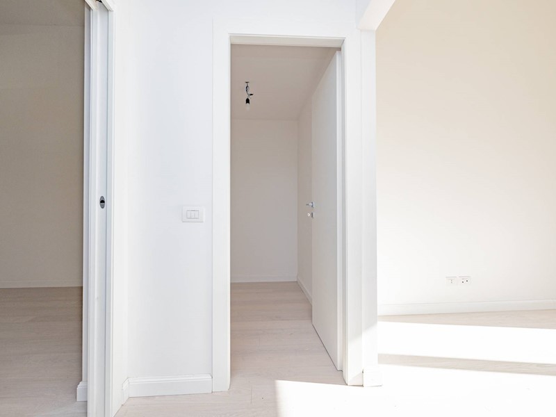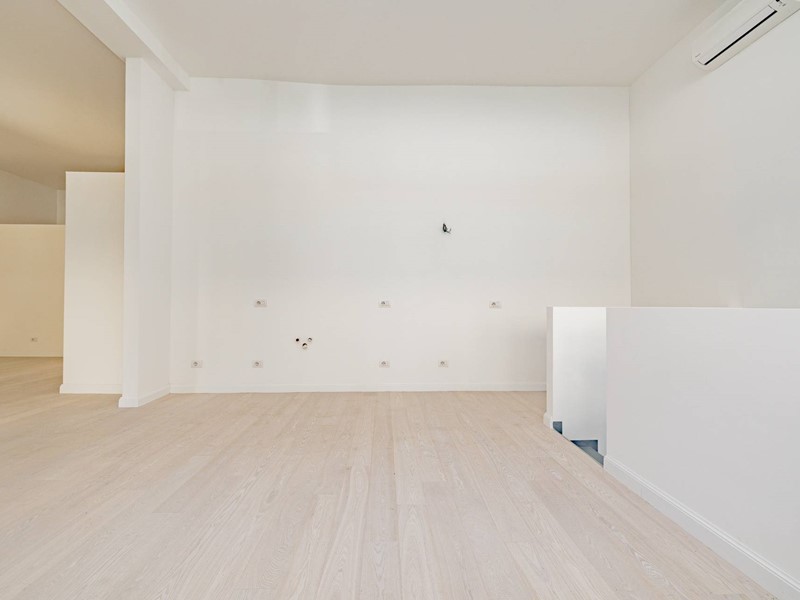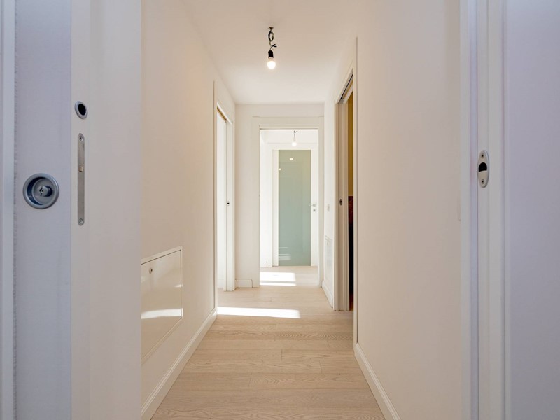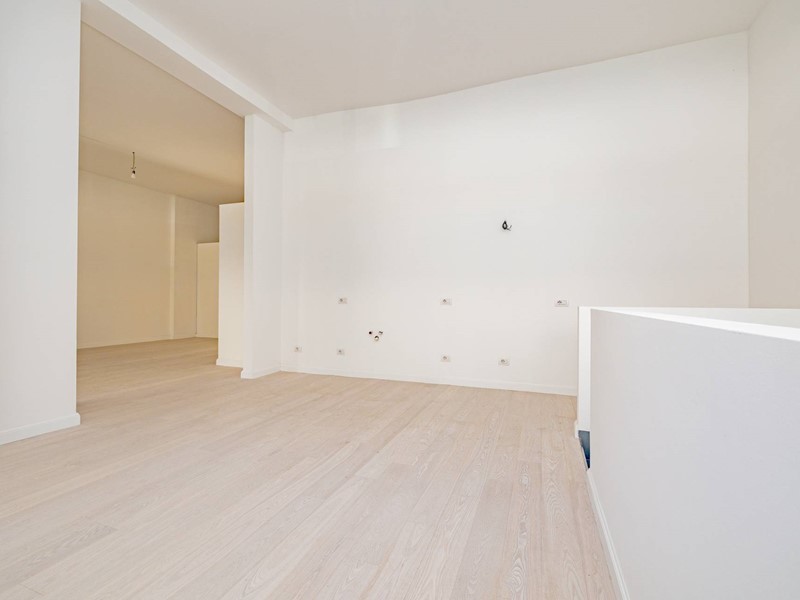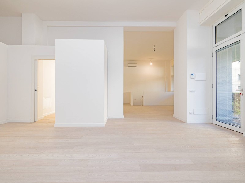 Le ampie vetrate inondano di luce gli spazi interni, mentre i soffitti alti e il pavimento in parquet di rovere sbiancato conferiscono un'atmosfera di eleganza e modernità.
