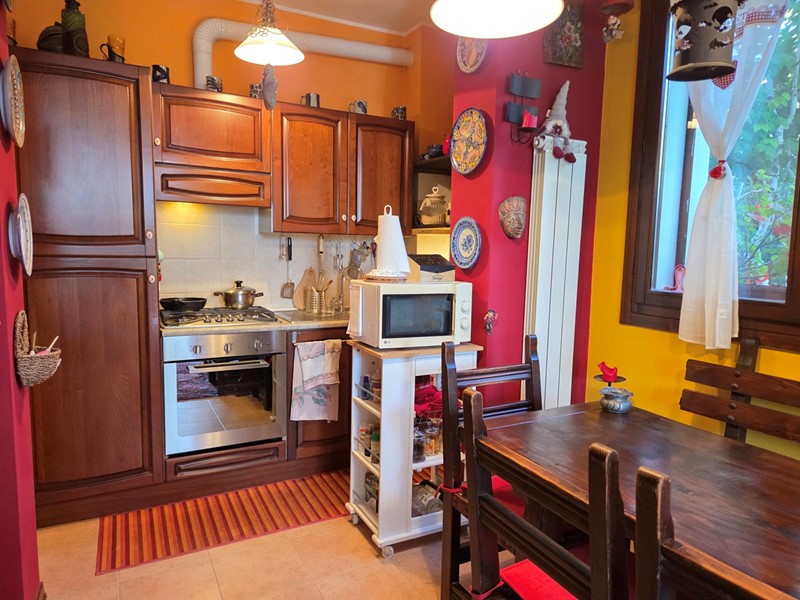 In posizione panoramica e comoda al centro del paese proponiamo in vendita appartamento composto da: sala con cucina a vista, camera matrimoniale, bagno, veranda coperta e splendido giardino attrezzato.