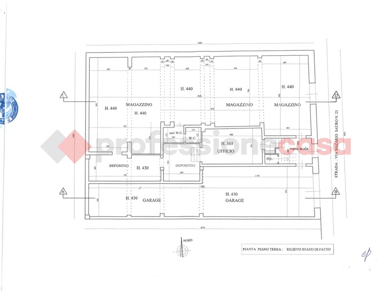 In zona centrale e vicina a tutti i servizi, proponiamo in vendita intero stabile terra cielo costituito da un locale ad uso deposito al piano terra della superficie di 220 mq, con adiacente locale uso garage della superficie di 90 mq ca.