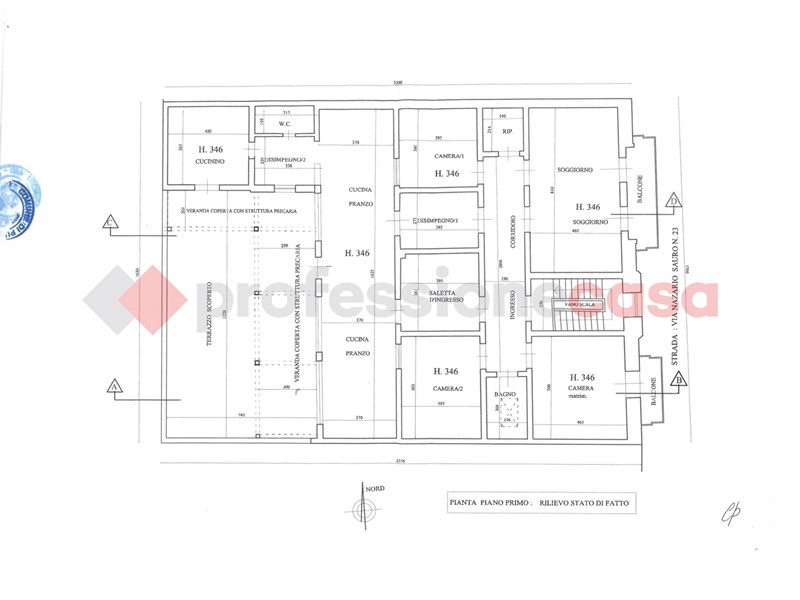 Al primo piano l'immobile si costituisce da un luminoso e spazioso appartamento, della superficie di 240 mq circa composto da ampio ingresso disimpegno, soggiorno, luminoso salone, ampia sala pranzo completamente verandata, cucina abitabile, tre spaziose e confortevoli camere da letto matrimoniali, studio, due bagni e un comodo ripostiglio. Completa la proprietà una terrazza a livello di 90 mq, fiore all'occhiello dell'appartamento, ideale per momenti di relax e cene all'aperto. La vendita riguarda la nuda proprietà, offrendo quindi un'opportunità unica per investitori e per chi desidera acquistare un immobile a condizioni vantaggiose.