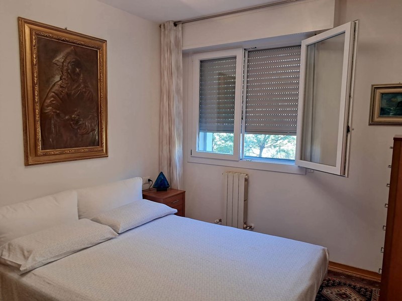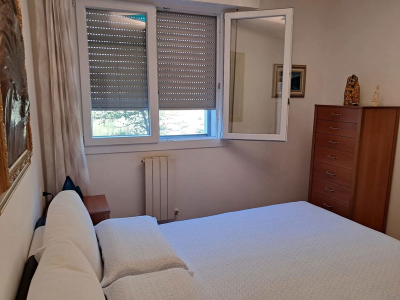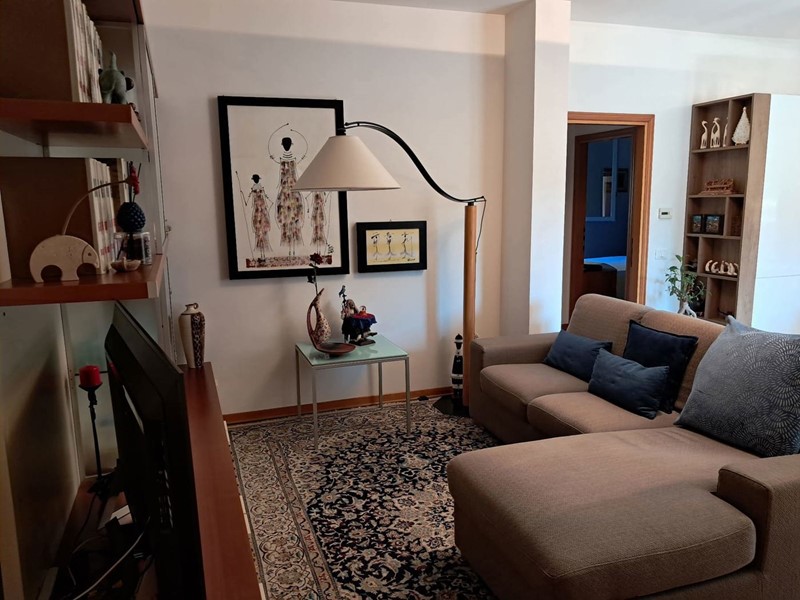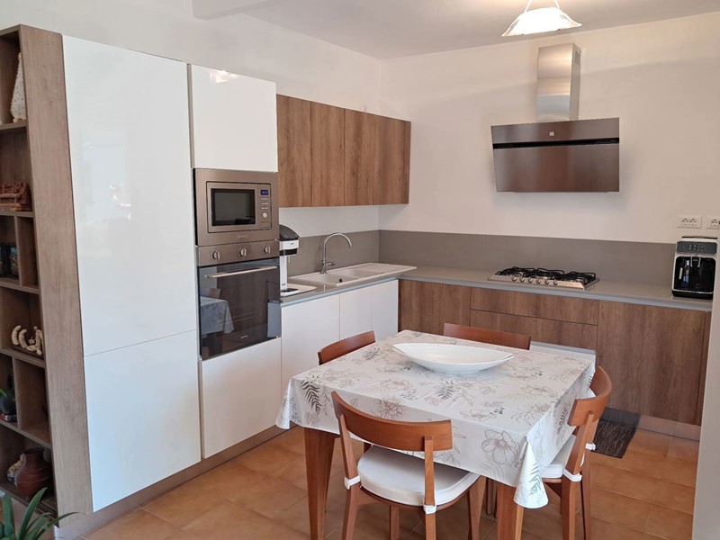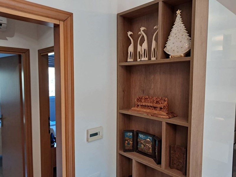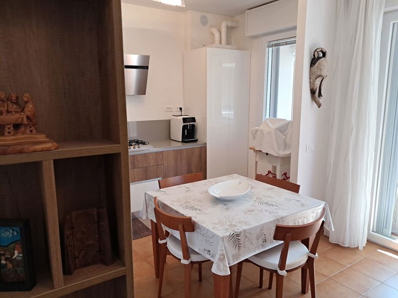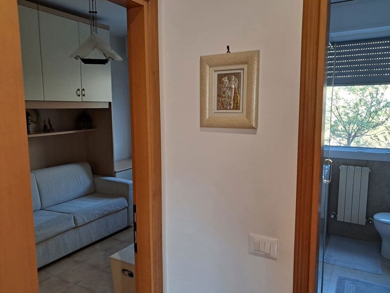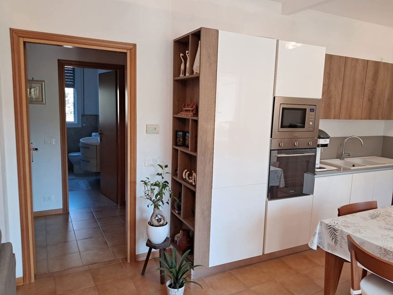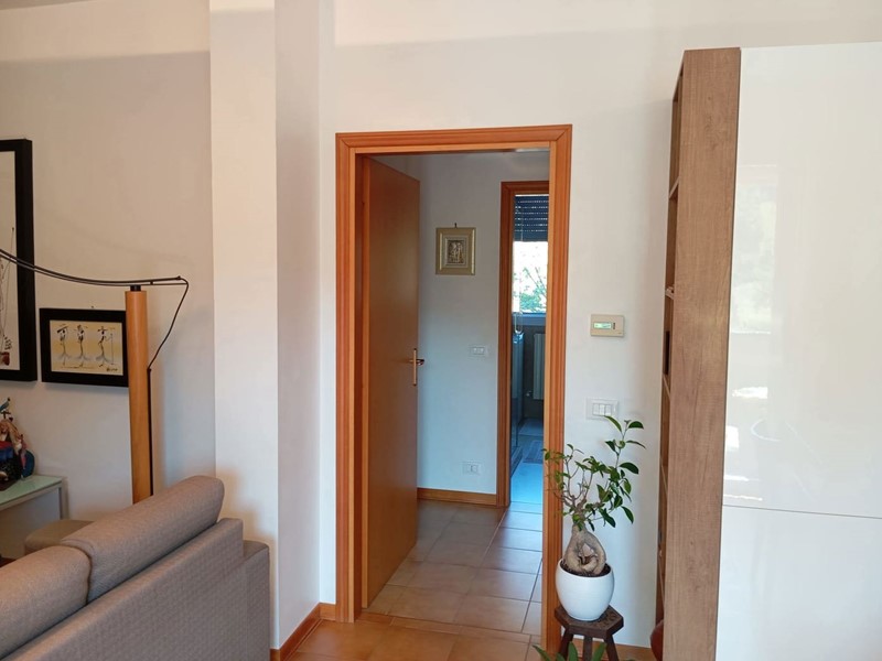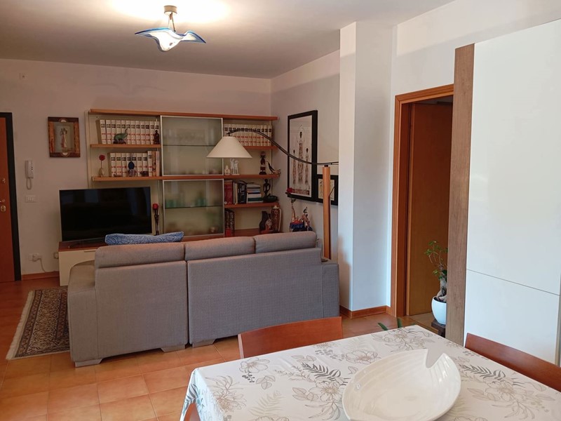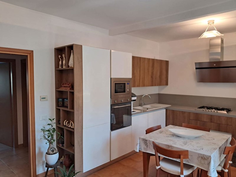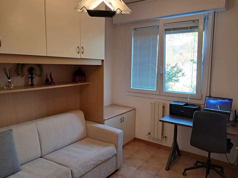 L'appartamento è così composto: ingresso su soggiorno con angolo cottura con accesso ad una loggia coperta con vista panoramica, disimpegno, due camere da letto entrambe molto spaziose e un bagno con doccia.