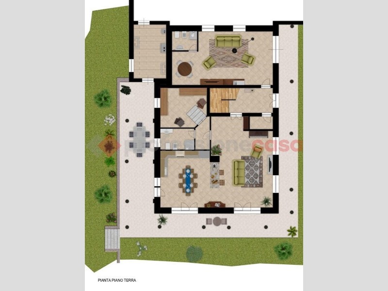 Gli spazi esterni comprendono un curato giardino, aree verdi per attività ricreative, un frutteto, un orto con impianto di irrigazione e uno splendido porticato, perfetto per pranzi, cene e momenti di relax all'aperto.