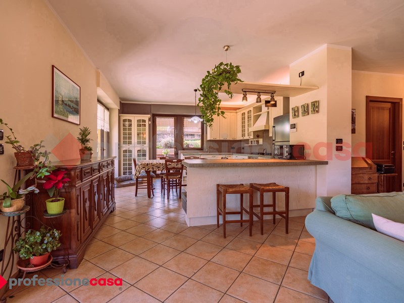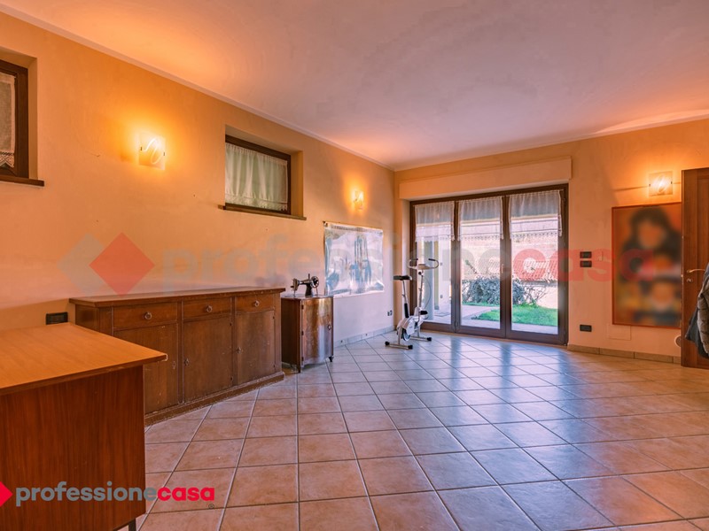 Al piano terra ci accoglie un luminoso salone doppio con ampie vetrate affacciate sul giardino, una cucina abitabile open space collegata alla zona living, un bagno finestrato, una cantina e un ampio locale indipendente di 31 mq con bagno, ideale come sala giochi o monolocale.