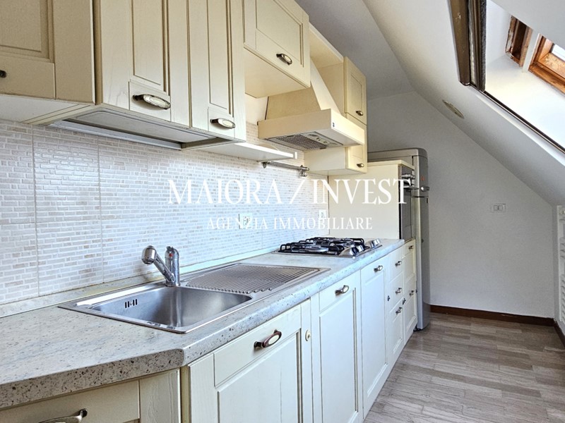 MONTEPRANDONE - In posizione panoramica con vista mare, limitrofa ai servizi e a pochi passi dal Borgo, appartamento mansardato con destinazione abitativa posto al 4 e ultimo piano senza ascensore. L'immobile di circa 102 mq con altezza di 2.45 ml è composto da ingresso su sala da pranzo fornita di caminetto, cucinotto finestrato, ampio soggiorno separato dalla restante zona giorno, disimpegno, due camere di cui una matrimoniale e una doppia, un ripostiglio/studio, un bagno finestrato e due balconi per totali mq 8.6. Completano la proprietà un garage di mq 38 e una cantina di mq 25. L'immobile molto ben tenuto e abitabile da subito è stato parzialmente ristrutturato nel 2010 con rifacimento bagno/cucina e impianto idraulico ed elettrico, dispone di riscaldamento autonomo a metano, aria condizionata, portone blindato e infissi doppi. Codice riferimento 1472. Agenzia Immobiliare MAIORA/INVEST.