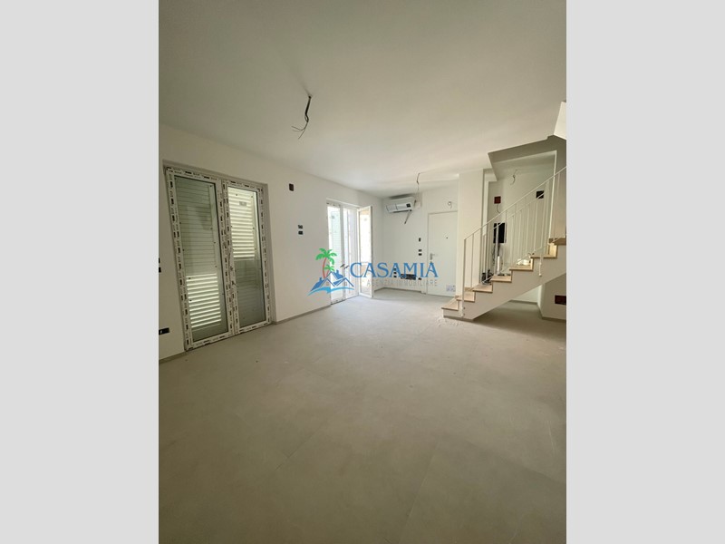 Piano secondo/terzo: attico con una superficie coperta di circa 85 mq composto dal primo livello in ingresso su ampia zona giorno con un ripostiglio-guardaroba, un soggiorno con accesso su balconata perimetrale, un bagno finestrato completo di box doccia e attacco lavatrice, il secondo livello raggiungibile con comoda scalinata interna è dedicato alla zona notte e comprende un'ampia camera matrimoniale, una cameretta con accesso diretto su favoloso terrazzo panoramico vista mare/incasato ideale per momenti di relax all'aria aperta.