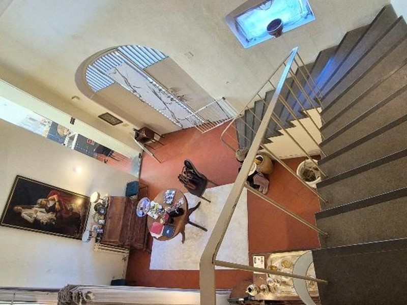 Tramite la scala a vista si accede ad un BELLISSIMA ZONA LIVING grande quanto il salone e pavimentata in parquet, particolari le porte finestre che si affacciano a sud dando luce a tutto l'ambiente con vista sul giardino; disimpegno notte, ulteriore bagno e due camere da letto di 32 e 20 mq mansardata.