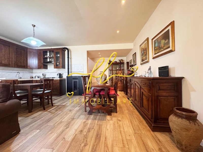 Al piano terra veniamo accolti da un ampio soggiorno con angolo cottura, luminoso e funzionale, pensato come cuore della vita quotidiana e spazio conviviale. Sempre su questo livello trovano posto un bagno con vasca (senza finestra), una pratica lavanderia e un ripostiglio/dispensa che garantisce ulteriore comodità. Una scala interna collega elegantemente i due piani.