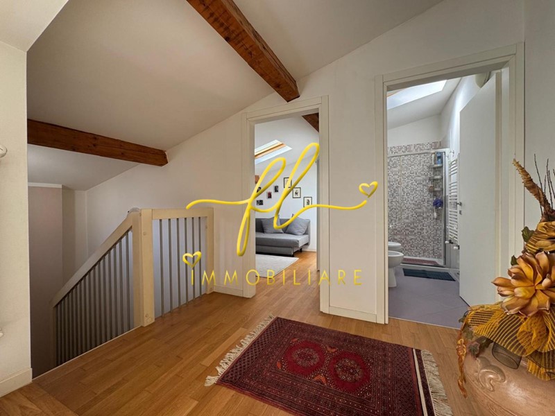 Al piano superiore, rifinito in parquet per donare ulteriore calore ed armonia, troviamo una camerina con lucernario, un secondo bagno con lucernario e una camera matrimoniale che si apre sulla terrazza a tasca di circa 3x4 mq, un angolo riservato e intimo dove godersi momenti di relax all’aperto.