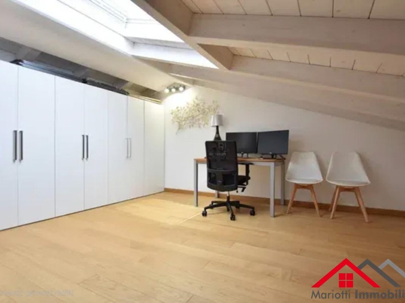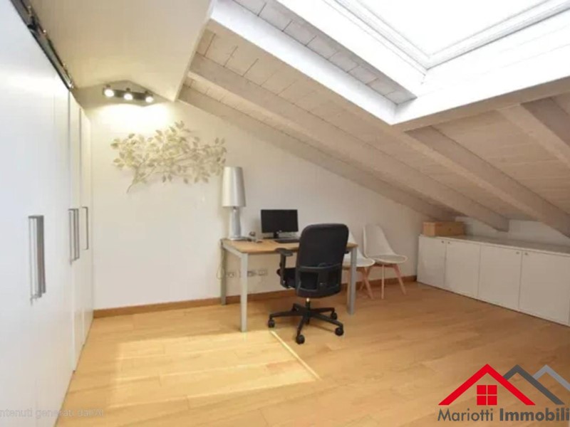 Al piano superiore ampio locale sottotetto mansardato con lucernario ideale come studio o terza camera.