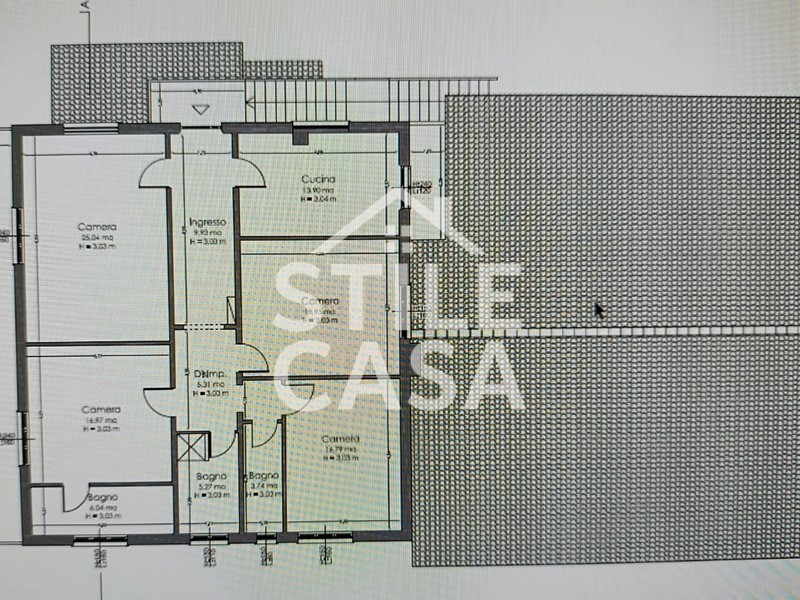 Con una superficie di 145 mq, si accede alla proprietà da scale esterne , si sviluppa su un unico livello ed è composta da ingresso, cucina abitabile con balcone, salone doppio con terrazzo, ingresso notte due grandi camere matrimoniali cameretta e tre bagni completi con finestra. A corredo dell'immobile soffitta sotto tetto e resede esterna su lato ovest del fabbricato posta al piano terra utilizzabile come posti auto.