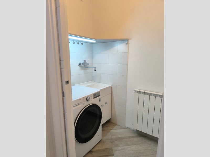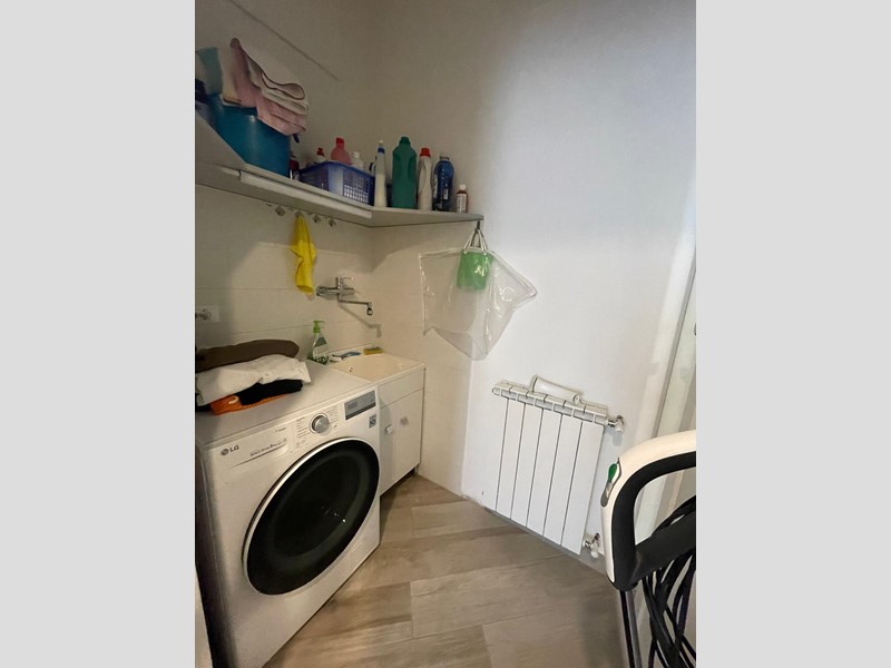ingresso, soggiorno con cottura, camera matrimoniale, cameretta, bagno, zona lavanderia e cabina armadi.