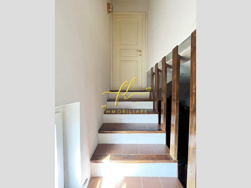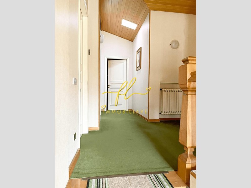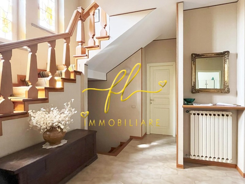 Una prestigiosa scala interna illuminata da vetri artistici a mosaico conduce al piano superiore, mansardato ma abitabile