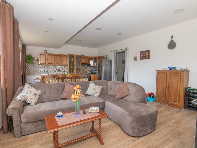 Piano terra: ampio soggiorno con cucina a vista, salotto, tre camere e bagno con doccia e vasca. Piano superiore da rifinire. Lavori di completamento, ideale come progetto personalizzabile.