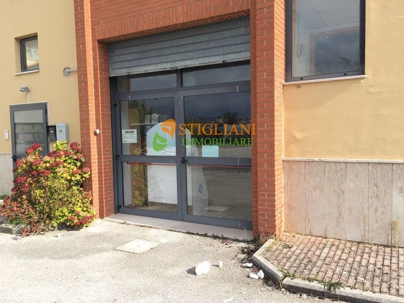 Zona industriale, locale commerciale di metri quadrati 500 circa, posto al piano seminterrato e composto da ampio vano unico con tre servizi e due vetrine. Ampio piazzale antistante libero adibito a parcheggio. Impianto di riscaldamento autonomo.