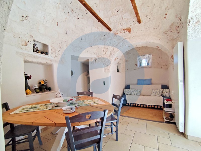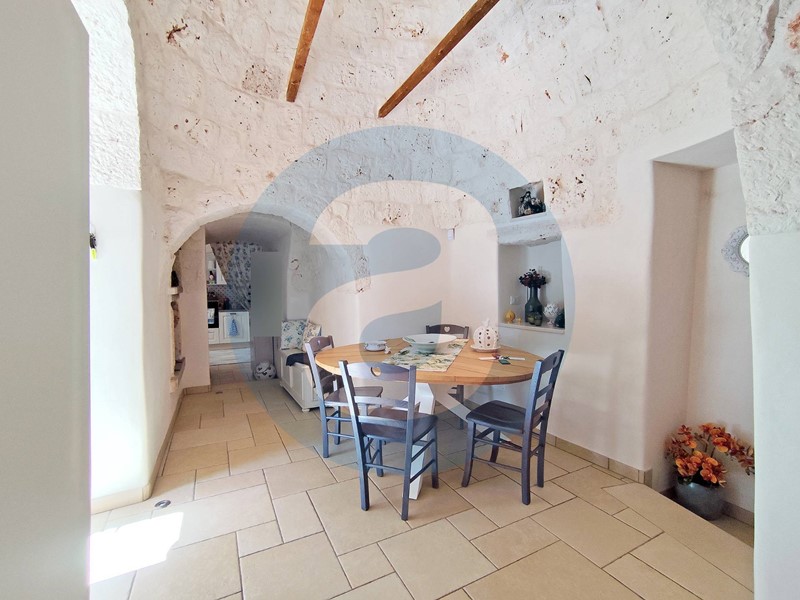 INTERNO: Trullo con costruzione adiacente e comunicante di 45 mq composto da ingresso in soggiorno; disimpegno; cucina; camera matrimoniale; bagno con aerazione naturale e doccia.