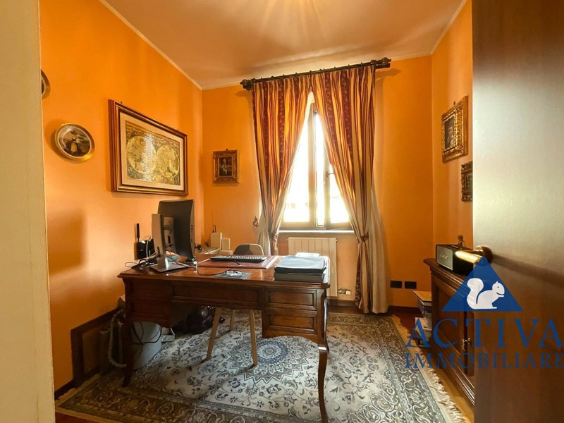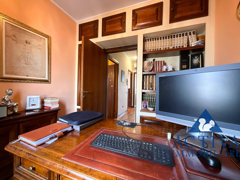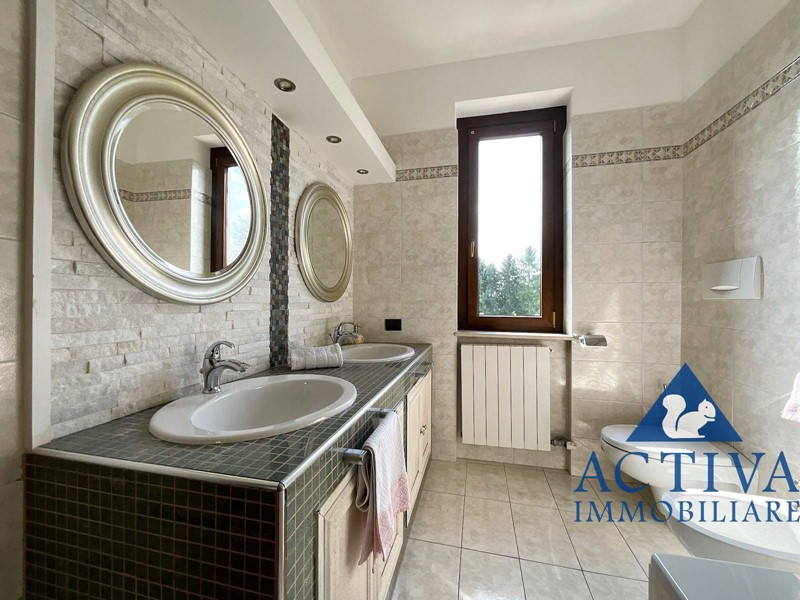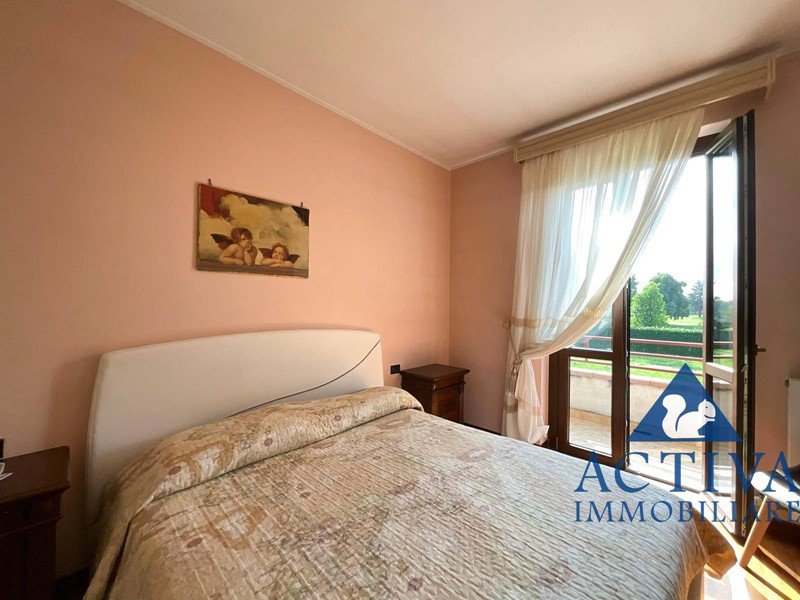 Completa il piano un bagno di servizio, mentre la zona notte al piano superiore offre spazi ideali per una famiglia: una camera matrimoniale con balcone e affaccio suggestivo sul campo da golf, una camera ragazzi ampia e luminosa, uno studio perfetto per smart-working o per lo studio dei più piccoli e un grande bagno con vasca.