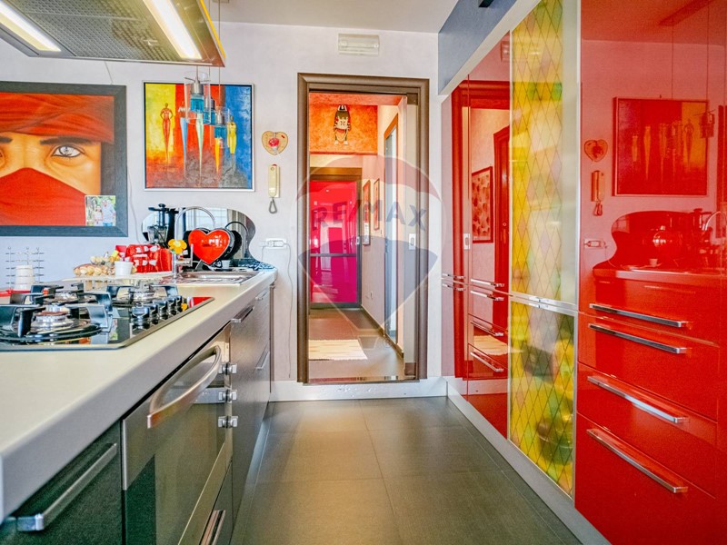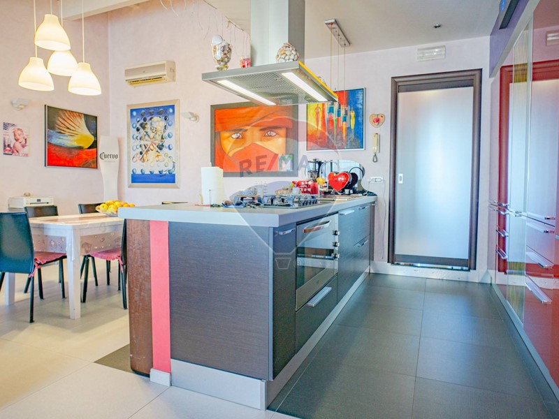 L'appartamento si trova al quarto ed ultimo piano servito da ascensore privato in una palazzina priva di spese condominiali ed è così distribuito: ingresso su grande open space , due camerette, una camera da letto, due bagni di cui uno con vasca ed uno con doccia. Completa l'immobile un terrazzino in zona living di 14 mq con vista panoramica.