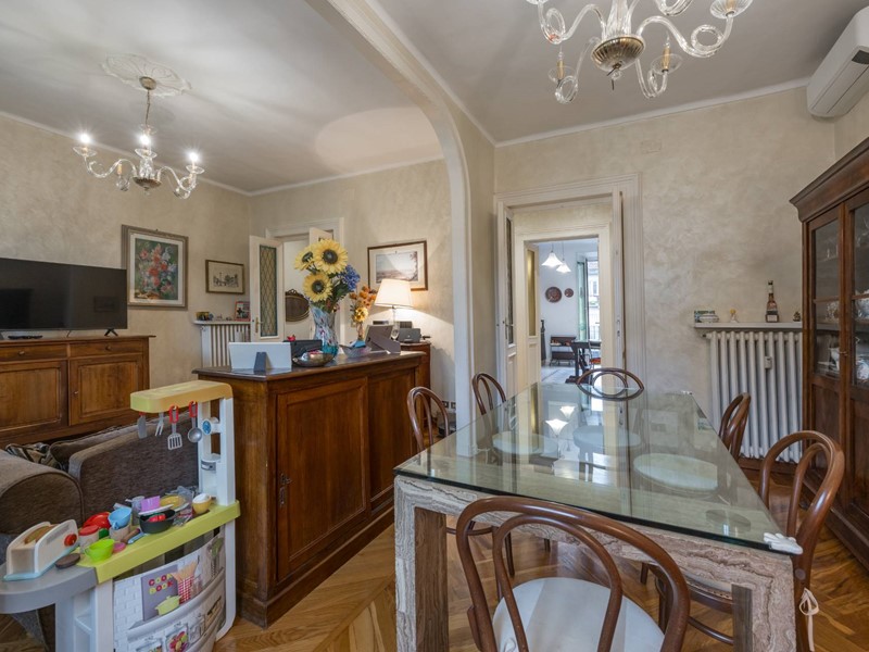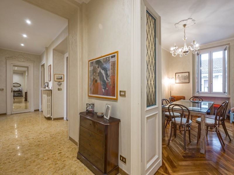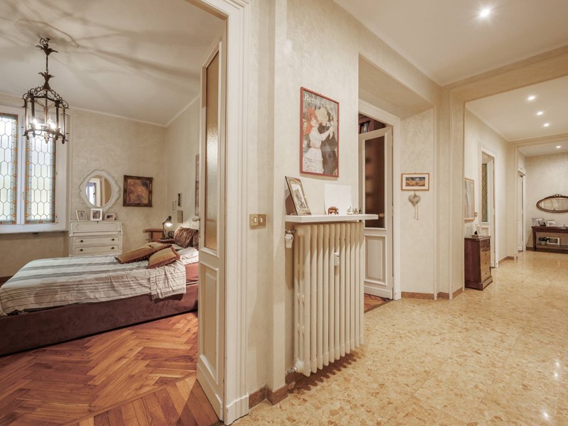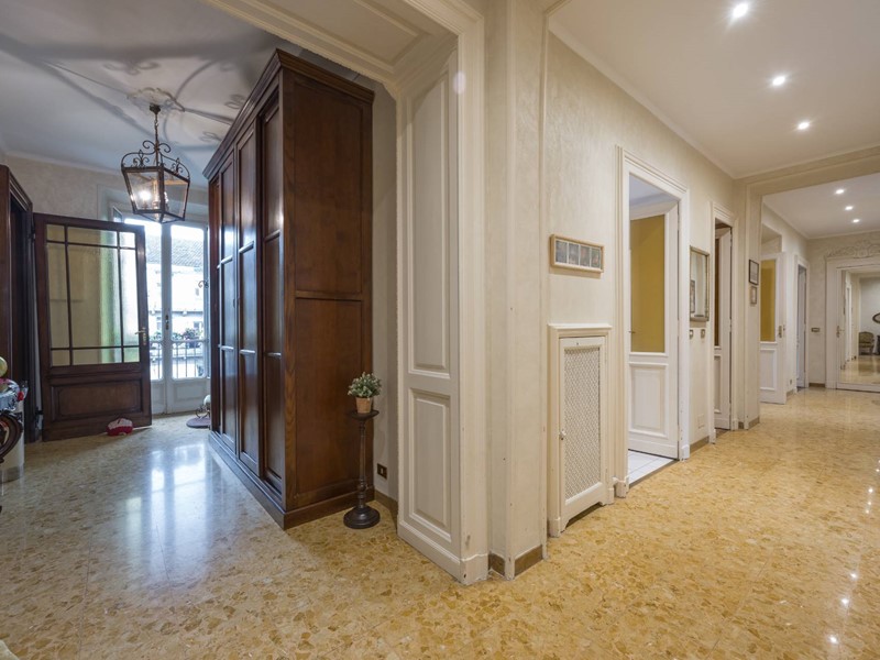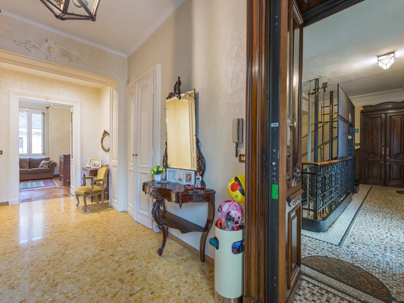 I pavimenti sono quelli originali, in marmo e parquet a spina ungherese, tutti perfettamente levigati e valorizzati, anche le porte interne sono d'epoca, opportunamente restaurate e lucidate, i soffitti sono alti 3 metri.