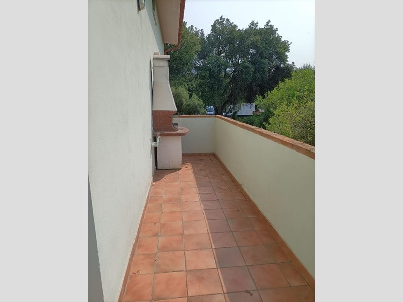 Un'ampia balconata abbraccia l'immobile su due lati dove è presente un barbecue.