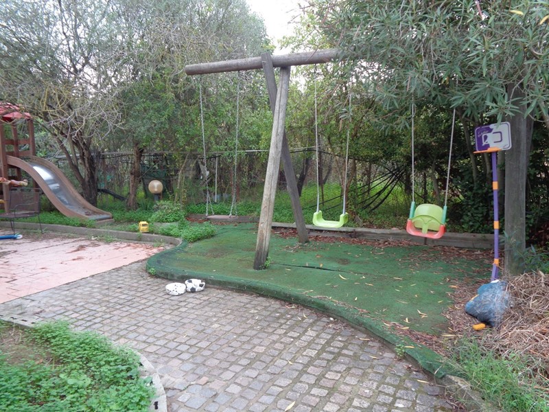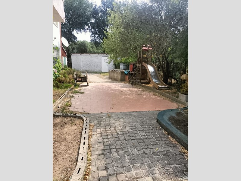 Nell'ampio e verdeggiante cortile comune vi è un'area dedicata al divertimento dei bambini.