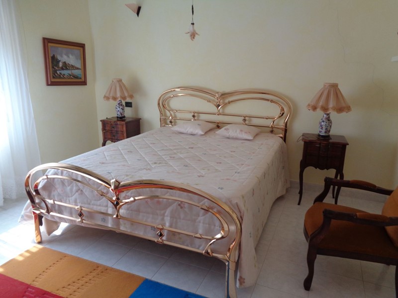 Al primo piano tre camere con bagno, sauna, terrazza di 40 mq con vista.