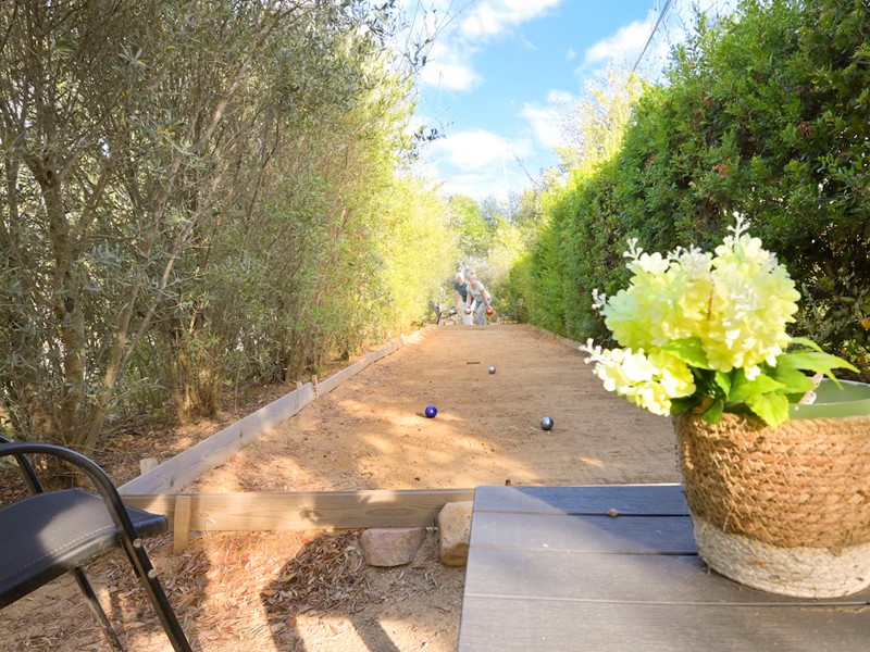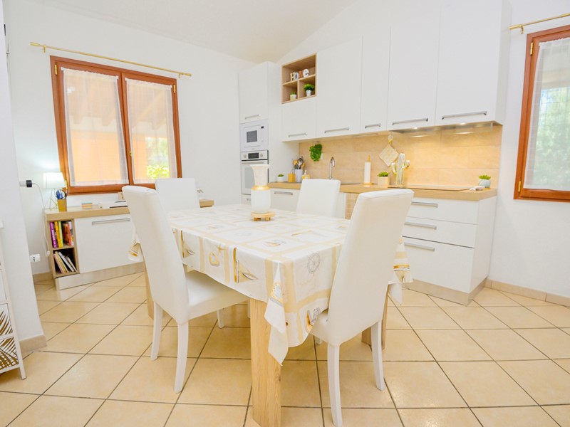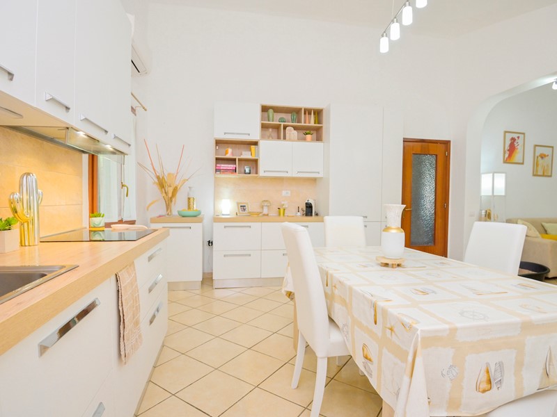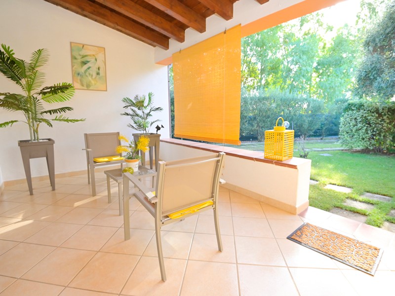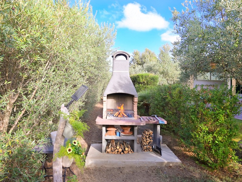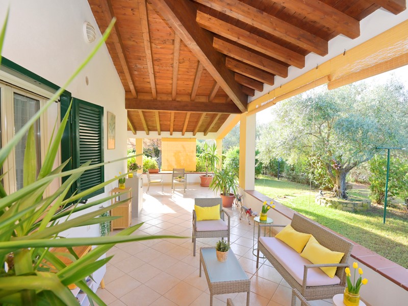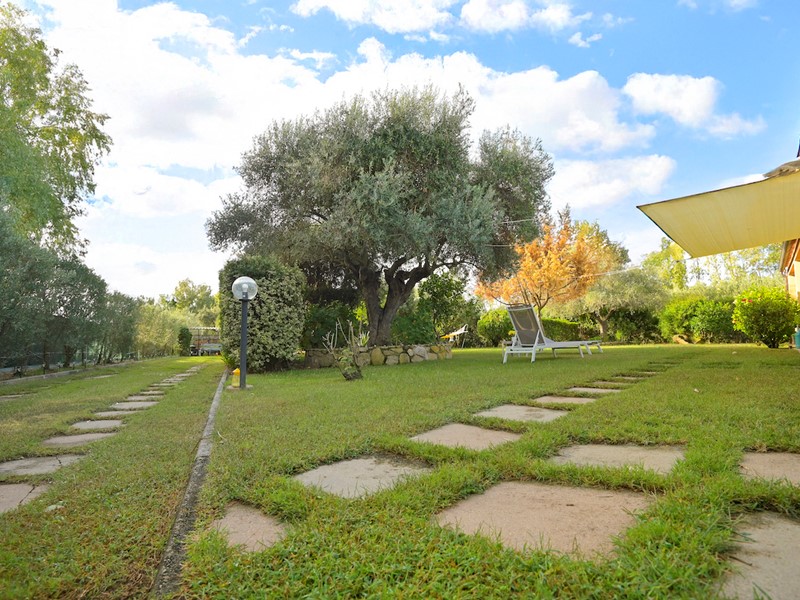 Esterno e giardino: l'immobile è completamente circondato da prato verde, il terreno è piantumato con olivi e vari tipi di piante da frutta, sono inoltre presenti un campo da bocce e un barbeque.