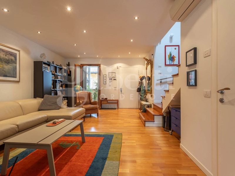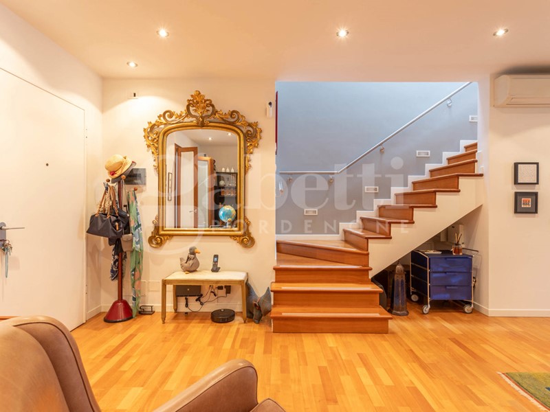 Rif. 836 - DUPLEX - MANSARDATO - SACILE CENTRO - VIVERE ELEGANTE - ZERO BARRIERE. Posizionato a soli pochi passi da Piazza del Popolo a Sacile, al terzo piano di elegante ed esclusiva residenza di inizi anni 2000, proponiamo alla vendita comodo appartamento in contesto condominiale di pregio. L'immobile si sviluppa in formato duplex con zona giorno al terzo piano e zona notte al quarto piano mansardato e, tramite intimo terrazzo in camera padronale, con vista verso Piancavallo. L'ingresso si apre in generosa zona living con pannello divisorio su area cucina / pranzo. Al servizio un bagno di cortesia che funge da centrale termica e un terrazzo utile sfogo all'aperto. Al piano notte due ampie camere con armadiature su misura e bagno ristrutturato nel 2025. Condizionatore, riscaldamento a pavimento, impianto di allarme, finiture di pregio sui pavimenti.