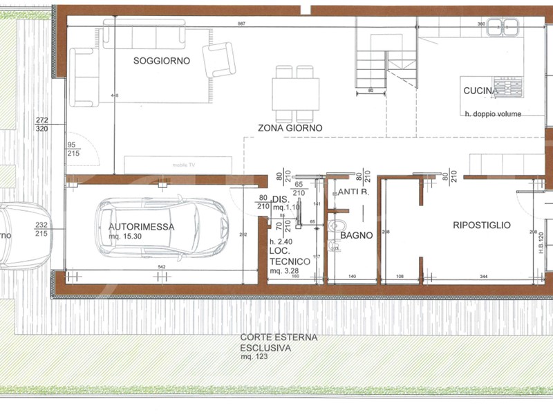 L'immobile è composto da ingresso sull'ampio salone, cucina abitabile da cui si accede alla corte esclusiva , un ampio ripostiglio di 11 mq da cui si può creare una camera da letto/ studio e il bagno con antibagno.