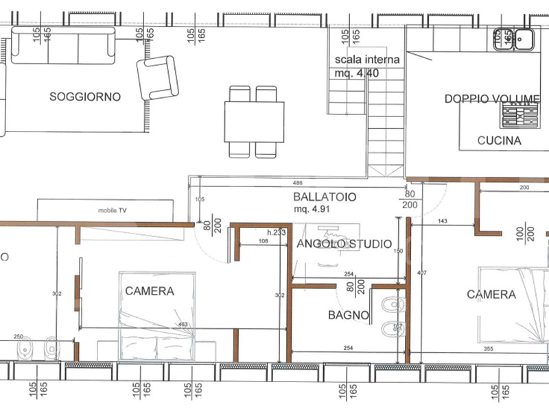 Tramite una scala interna si accede alla zona notte composta da due luminose camere da letto e dal secondo bagno.