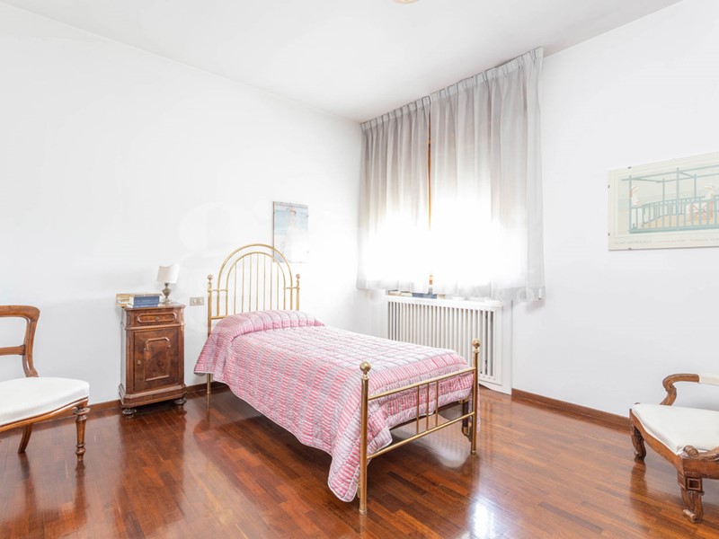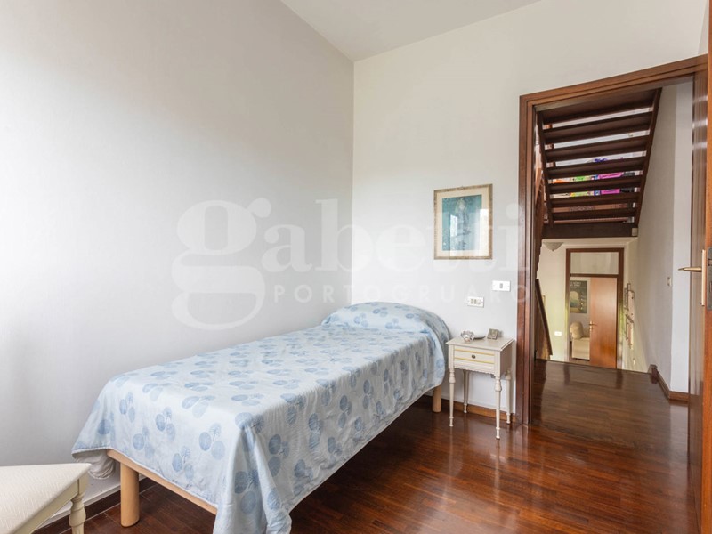 La zona notte, intima e riservata, ospita tre camere: una camera per gli ospiti, una singola, e la suite padronale con bagno privato e terrazzo esposto a nord-est. Da qui lo sguardo si apre sul magnifico giardino che abbraccia l'intera proprietà: oltre 1.800 mq piantumati, un'oasi di verde e serenità che regala colori e profumi in ogni stagione.