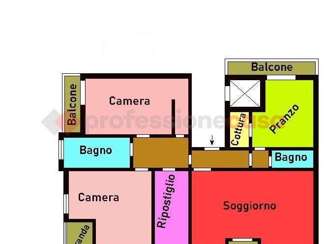 Con i suoi 130mq circa, è composto da ingresso, soggiorno doppio con balcone, cucina abitabile con balcone di servizio e ripostiglio esterno, disimpegno notte, 2 camere, una verandata e l'altra con balcone, 2 bagni finestrati, ulteriore ripostiglio.