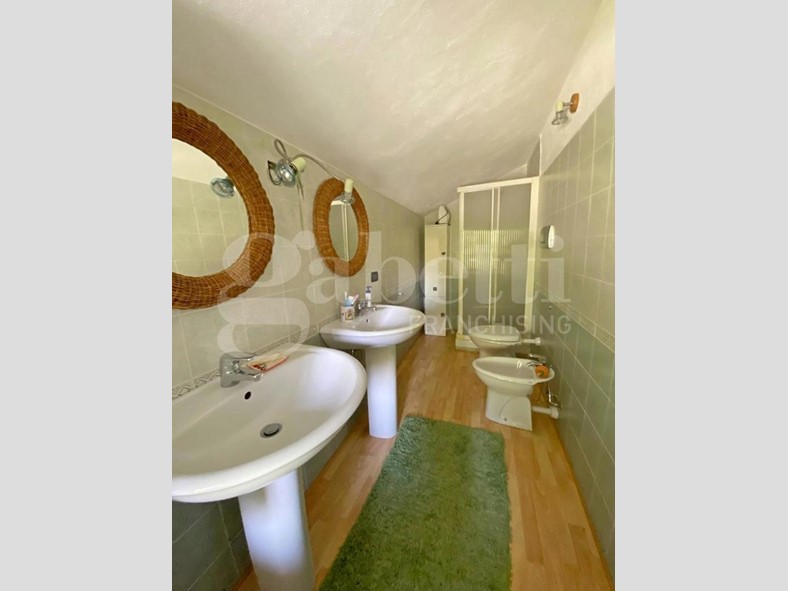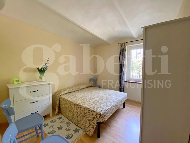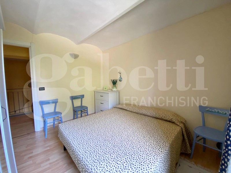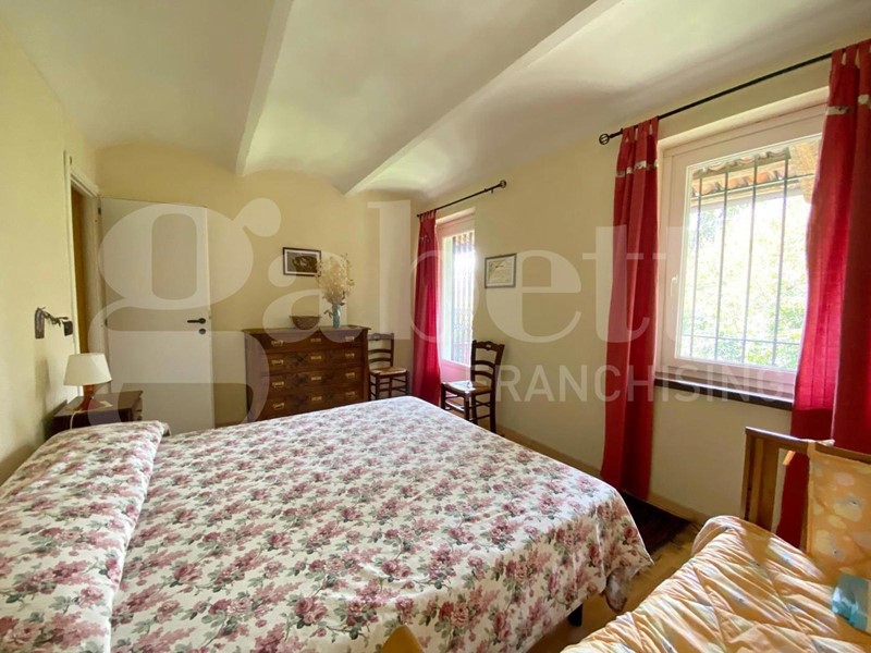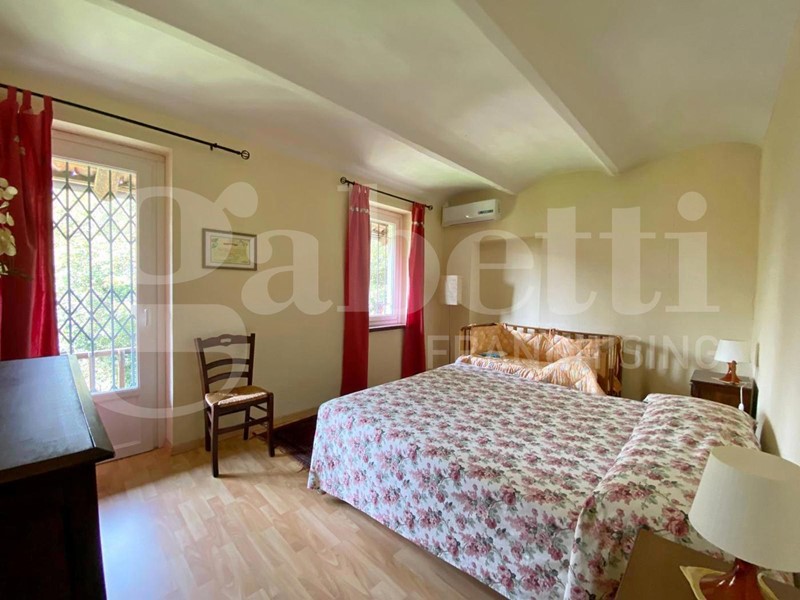 Al primo piano si trovano tre camere da letto, luminose e ben dimensionate, insieme a un secondo bagno. Il balcone in legno regala uno scorcio suggestivo sul giardino e dona ulteriore fascino all'immobile.