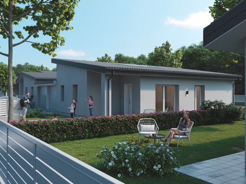 L’abitazione offre ambienti moderni e funzionali: un portico d’ingresso che accoglie la casa con eleganza, una cucina separata, un luminosissimo salone caratterizzato da una grande vetrata che si apre sul verde del giardino, due bagni ben rifiniti e tre camere da letto confortevoli. A completare la proprietà troviamo un’autorimessa di 21 mq, perfetta per soddisfare ogni esigenza di spazio.
