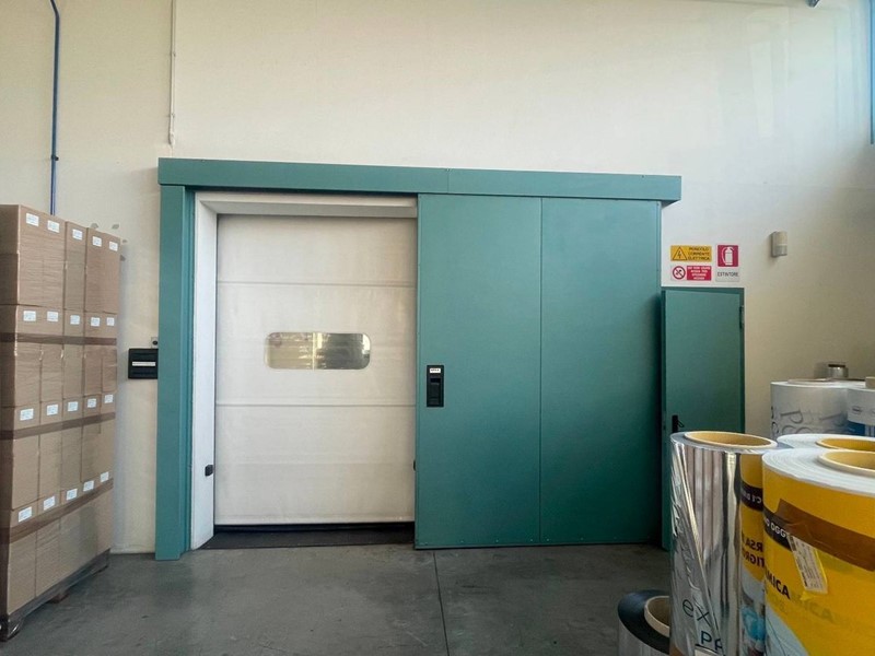 L'immobile è composto da ampio vano produzione momentaneamente diviso in produzione e magazzino da pareti certificate Rei, servizi, docce e spogliatoi a servizio della produzione.