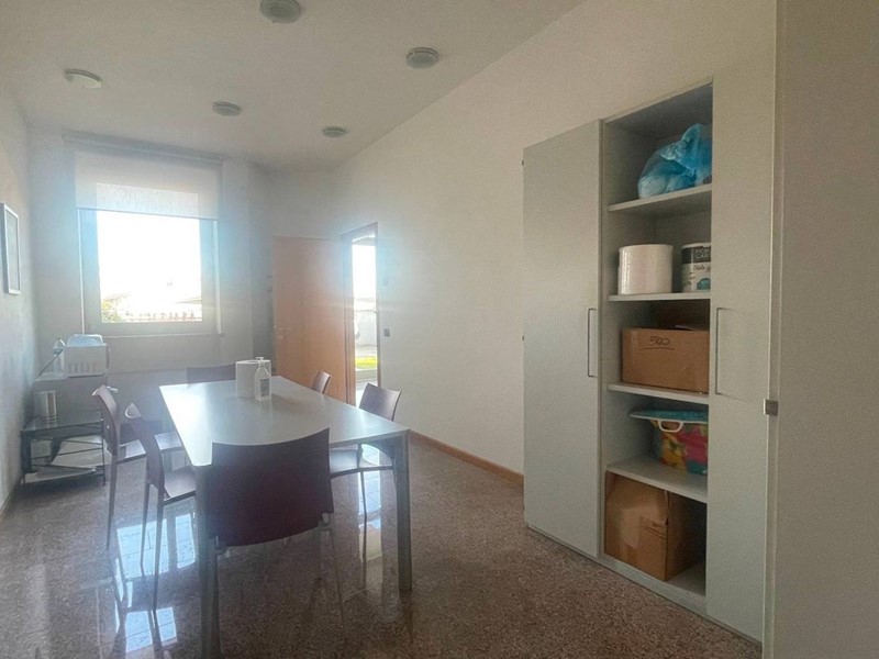 Attraverso una porta taglia fuoco accediamo ad un magazzino ad uso deposito / lavorazione, dallo stesso abbiamo l'accesso diretto alla zona reception e uffici; composti da Ingresso e sala riunioni al piano terreno, quattro uffici, sala Showroom e due bagni al primo piano.