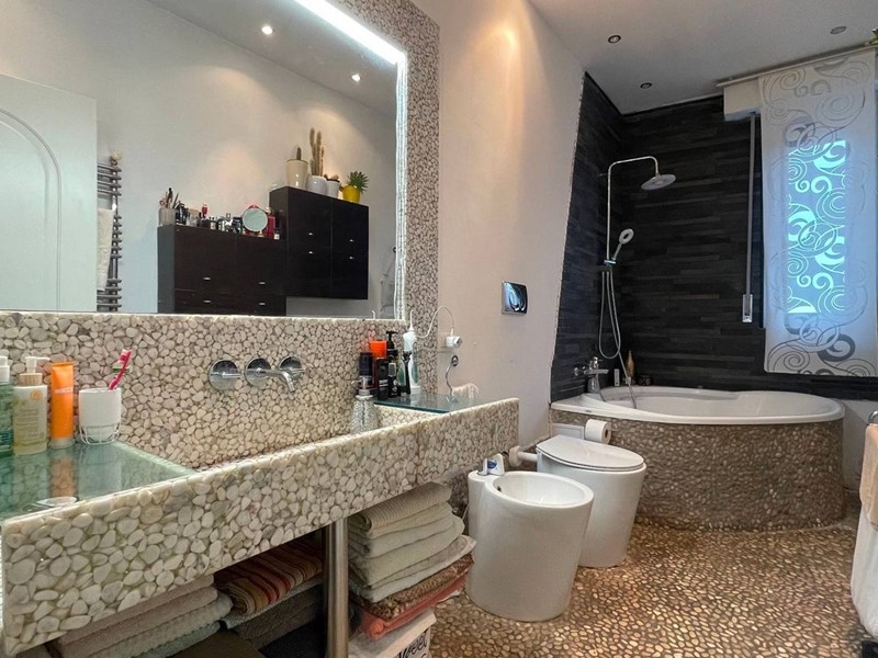 L'intero appartamento è stato completamente ristrutturato, con impianti idraulici ed elettrici nuovi, pavimento in grès finto legno, infissi in doppio vetro e camera d'aria in PVC, rifinito con arredamento su misura e aria condizionata caldo/freddo.
