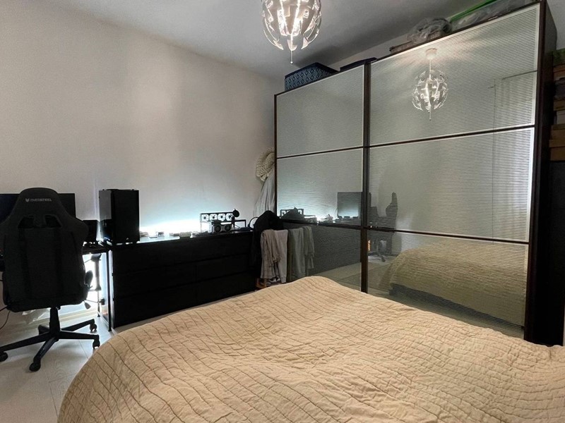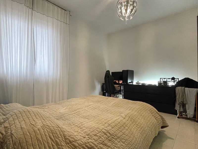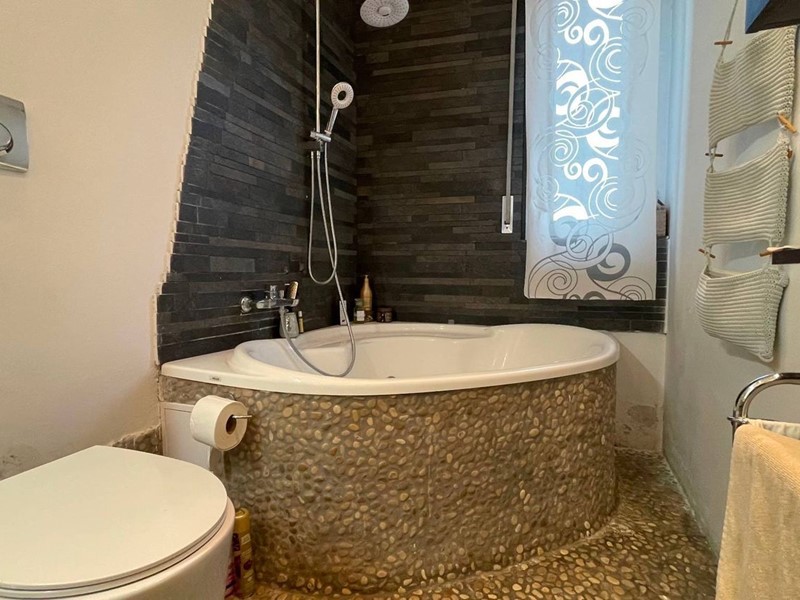 L' appartamento è suddiviso in open space composto da zona giorno con angolo cottura, due camere matrimoniali e un bagno finestrato con vasca idromassaggio.