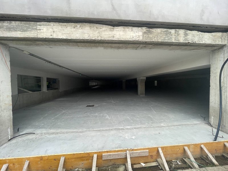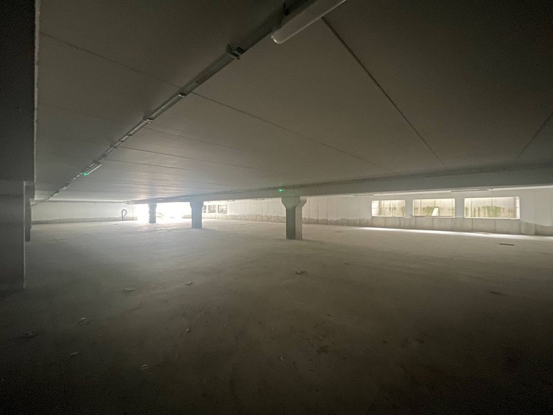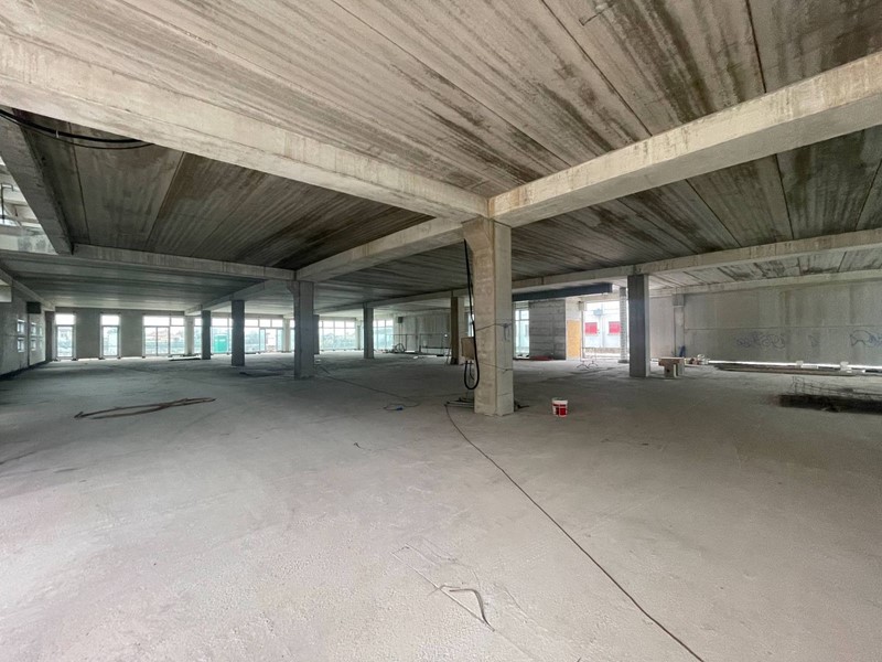 Il fabbricato è situato al centro del lotto e composto da seminterrato con 42 posti auto coperti, ampio vano al piano terra con vetrate, primo piano senza colonne con affaccio esterno vetrato lungo tutto il fabbricato e 66 posti auto scoperti distribuiti su tutto il lotto recintato.